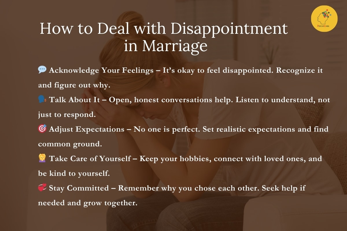 Feeling disappointed in marriage doesn’t mean it’s failing. It just means it’s time to adjust, talk, and reconnect. Here’s how you can handle it: