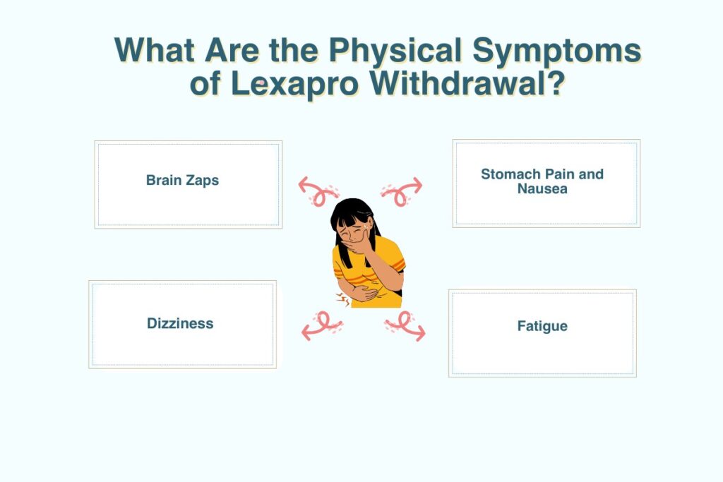 Lexapro withdrawal often feels like a mix of dizziness, brain zaps, nausea, night sweats, mood swings, anxiety spikes, and fatigue. Some people also notice flu-like symptoms, headaches, sleep changes, or stomach pain. Symptoms vary depending on dose and how fast you reduce it.