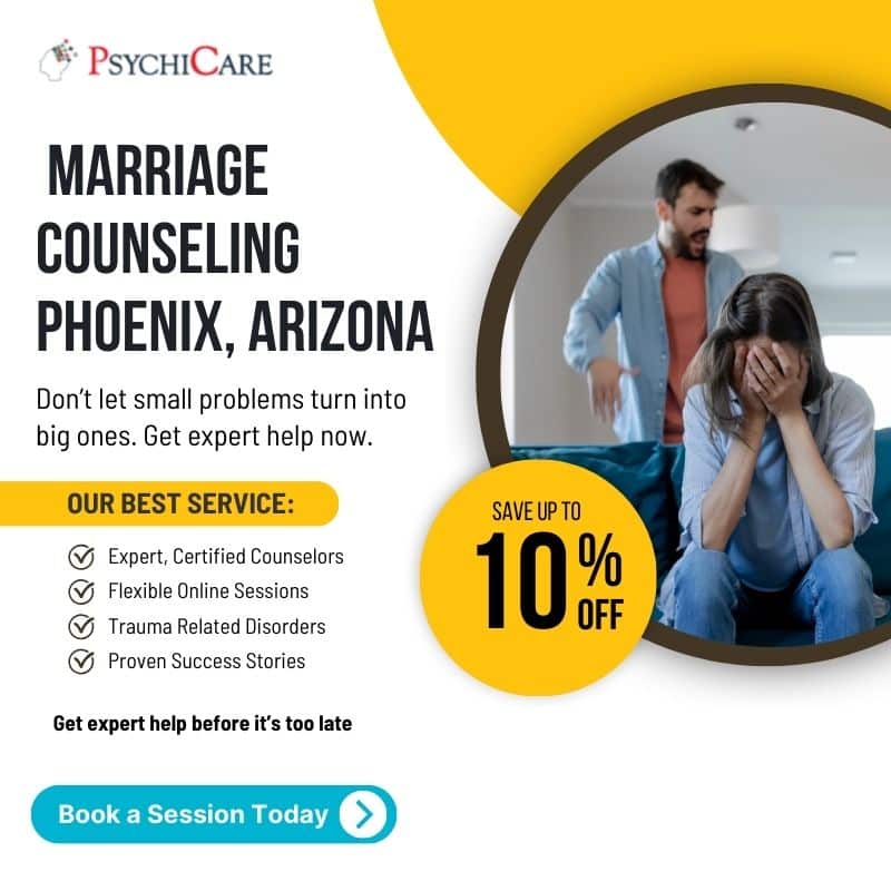 Is your relationship facing challenges? PsychiCare offers online marriage counseling in Phoenix, Arizona, to help couples navigate difficulties and rebuild their connection.