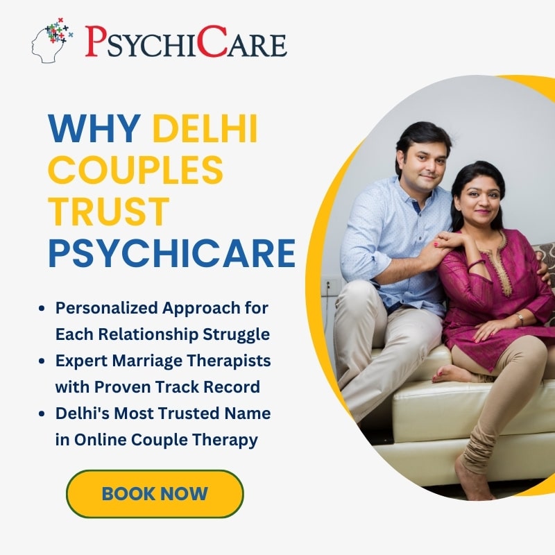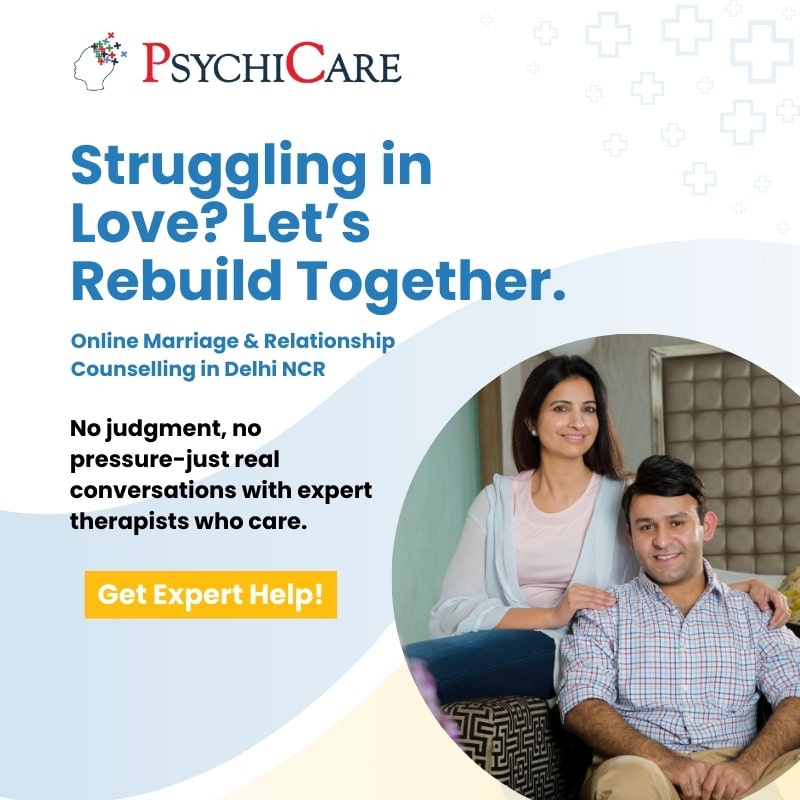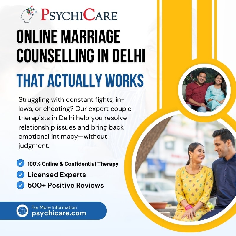 Feeling stuck in your relationship? Struggling with arguments, trust issues, or emotional distance? At PsychiCare, we offer expert online marriage counselling in Delhi to help couples rebuild connection, improve communication, and resolve deep-rooted issues without ever leaving home.