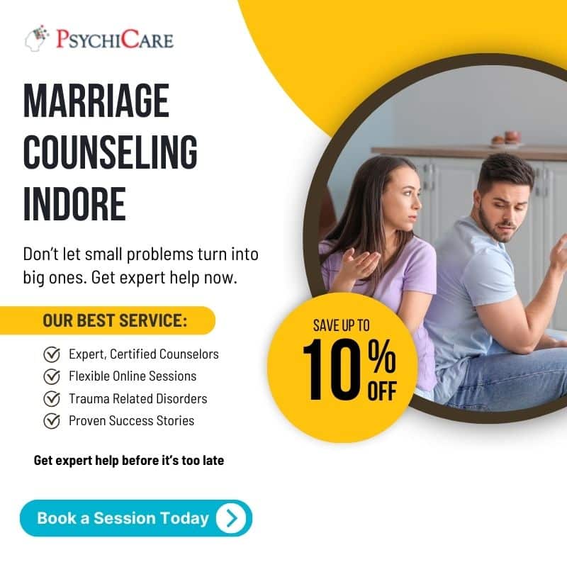 If things feel strained between you and your partner or you’re finding it harder to connect, you’re not alone. At PsychiCare, we offer trusted online marriage counselling for couples in Indore to help you overcome challenges and feel close again.