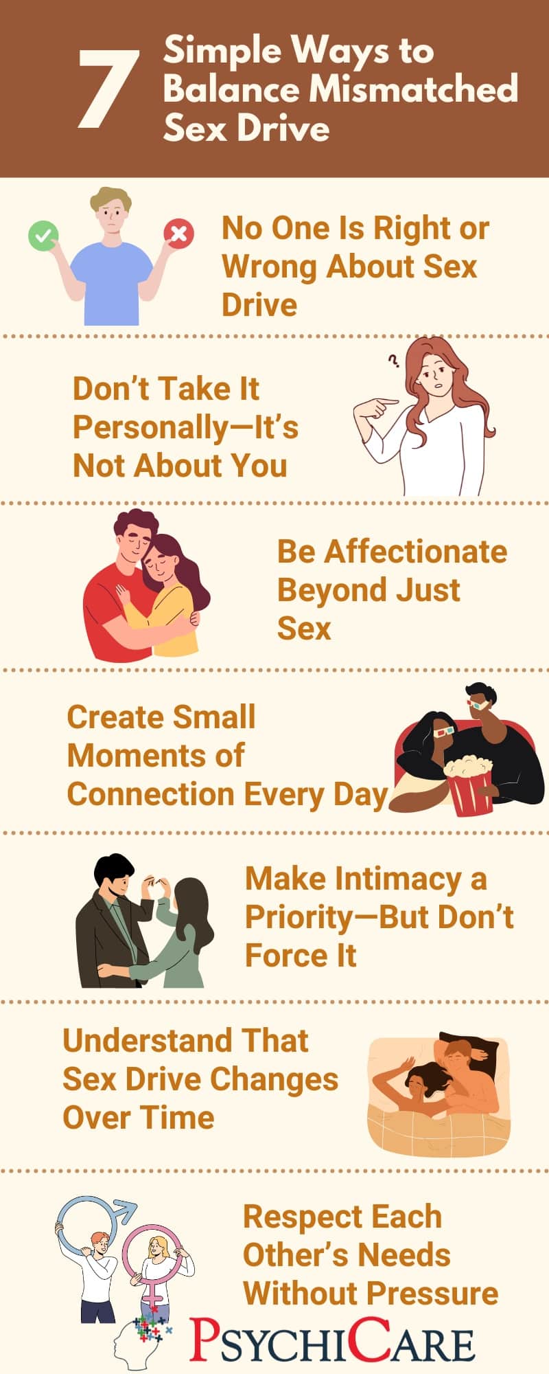 If every hug feels like an invitation for sex, the lower-drive partner may start avoiding physical touch. That’s when the emotional disconnect begins.