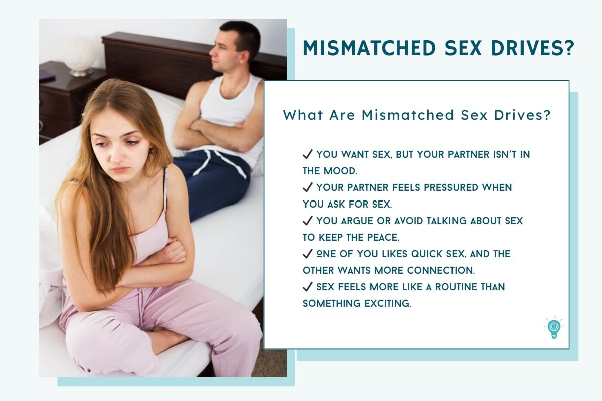 Mismatched sex drives mean you and your partner don’t want sex the same way or as often. Maybe you feel ready every day, but your partner rarely thinks about it. Or you need cuddles and deep talks first, while they’re good to go anytime. This difference can cause hurt feelings, stress, and even fights—but it doesn’t have to.